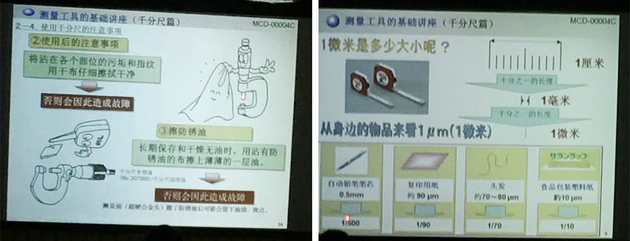 首先,讲解三丰各种卡尺、高度尺、千分表、千分尺的各部位名称、测量方法,读数方法,保管方法,保管环境和使用注意事项等。讲解内容简单实用,得到员工的一致认可。会后结合实际试用情况激烈的讨论了环境温差对于精度的影响,讲师和员工都受益匪浅。