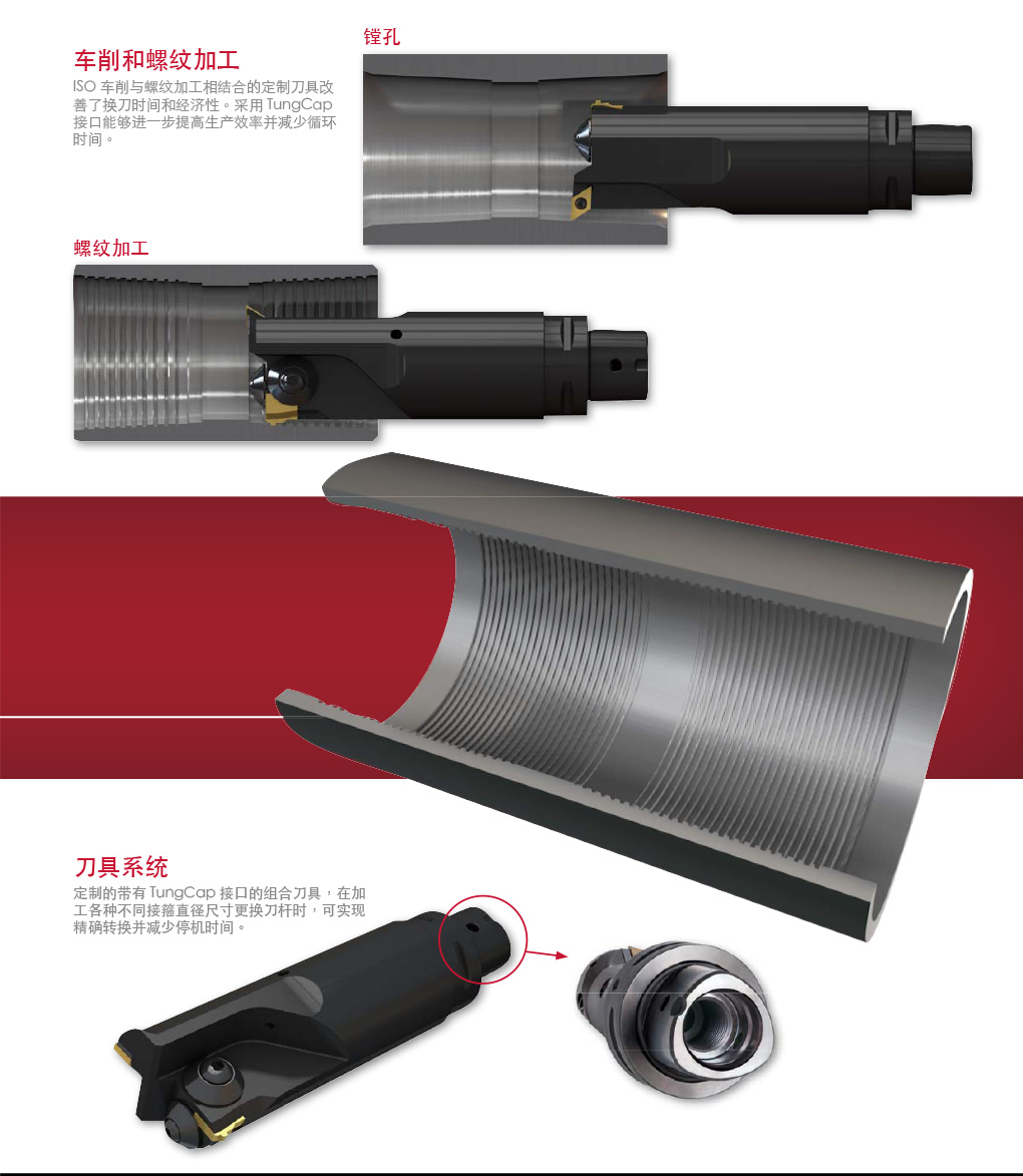 泰珂洛能够为所有的特定环境提供定制刀具解决方案。泰珂洛提供的有效的大直径管材切断方案中,能够为驱动式车床制造牢固的锁紧系统。